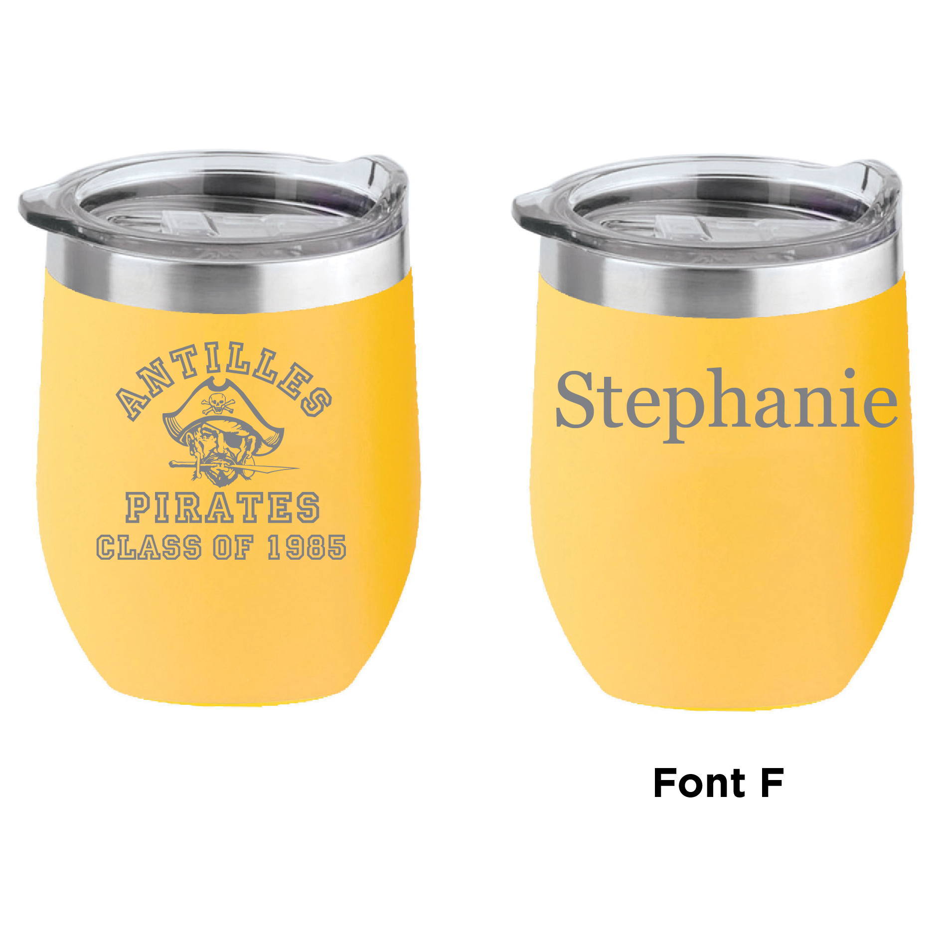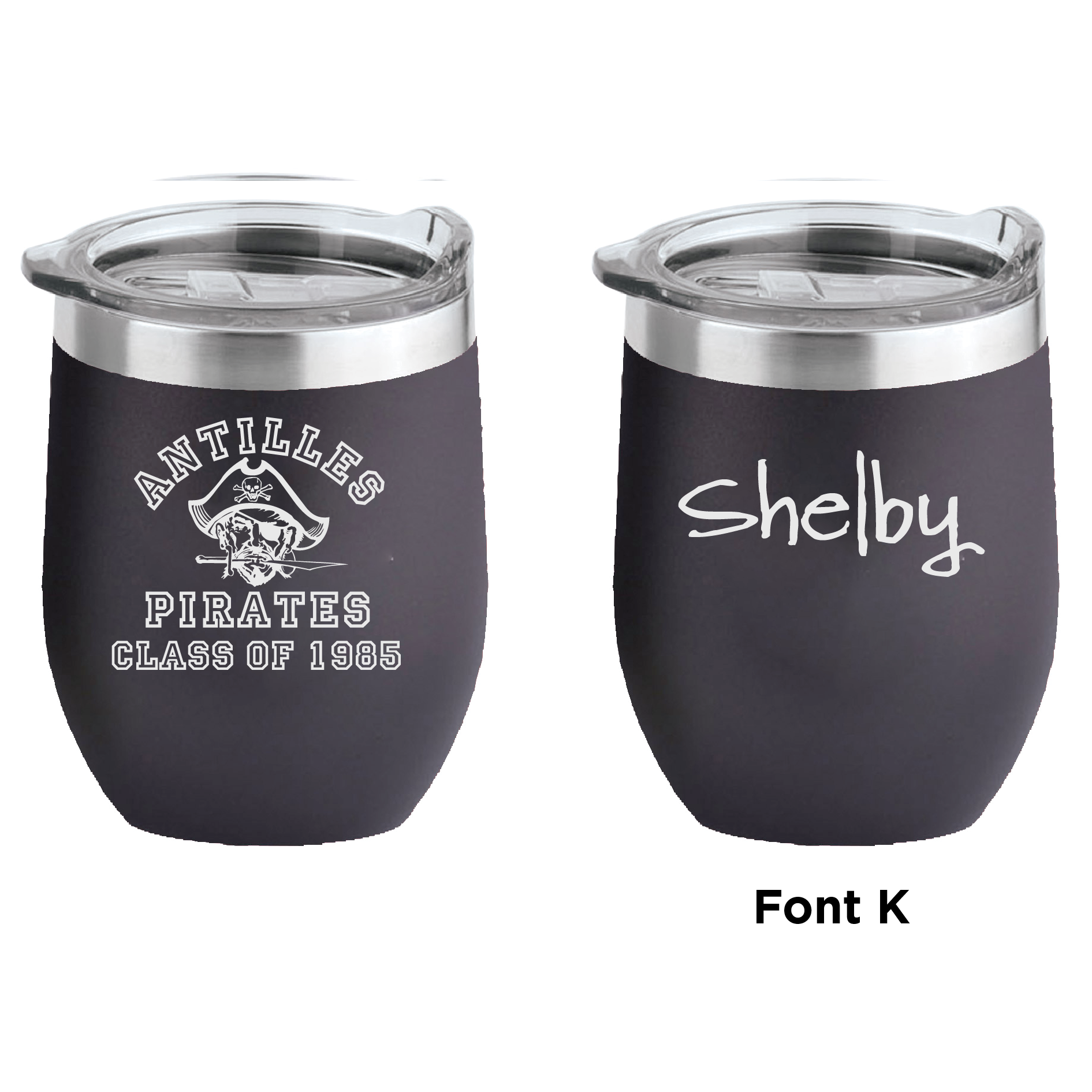 This double-walled 16 oz insulated wine tumbler will keep your drink protected from the elements. Each tumbler is laser-engraved with the Antilles High School Pirates Class of 1985 logo.